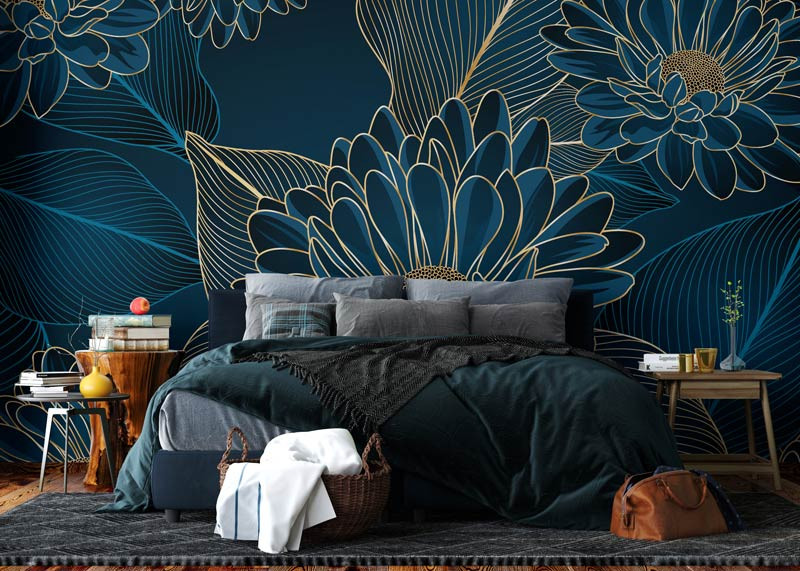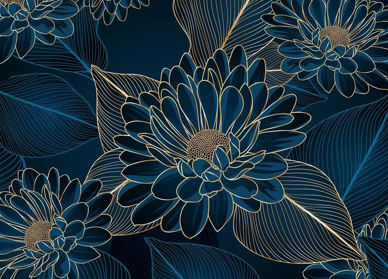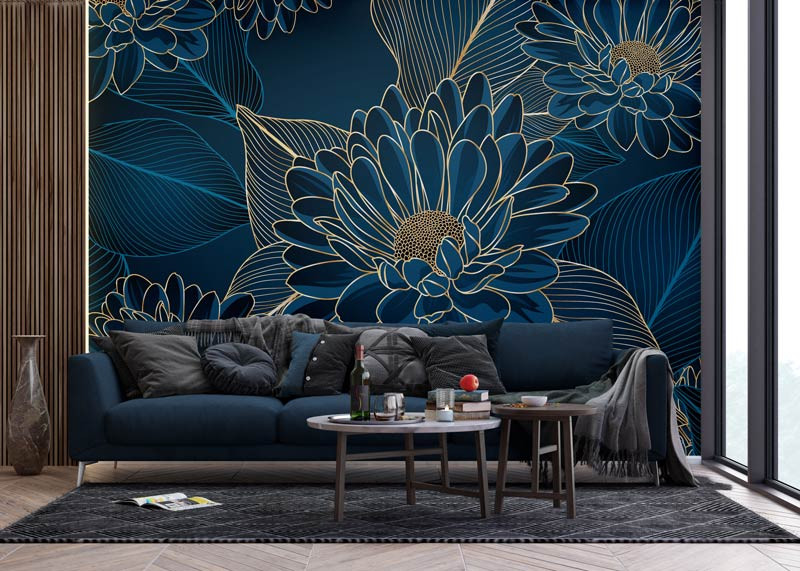 Schaffen Sie eine üppige und elegante Atmosphäre mit der Fototapete Chrysanthemums Floral Splendour. Die verschnörkelten Chrysanthemen, umrahmt von dezenten goldenen Akzenten, verleihen dem Raum einen raffinierten Look. Dieses Design ist perfekt für Liebhaber floraler und luxuriöser Interieurs.