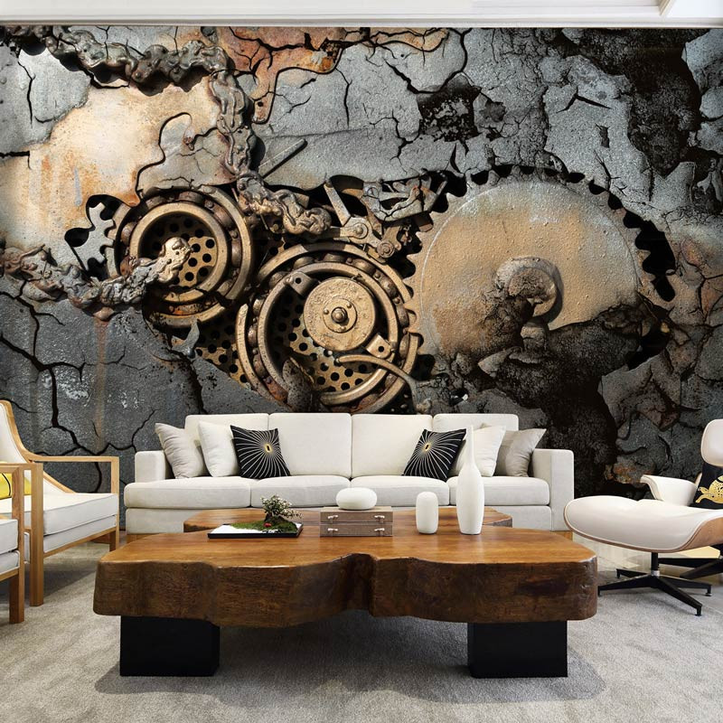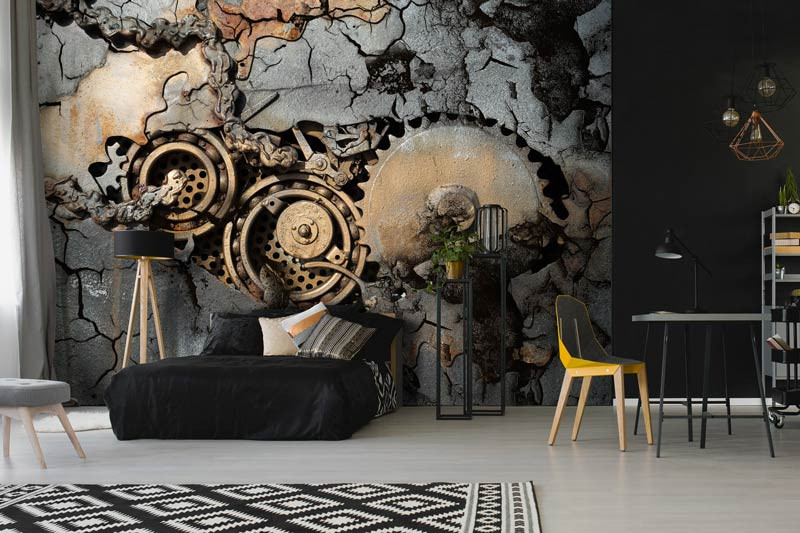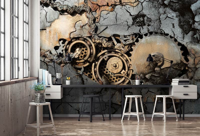 Zahnrad Fototapete schafft einen industriellen Look im: Wohnzimmer, Schlafzimmer, Hobbyraum, Küche, Flur, Büro oder jeden anderen Raum.
