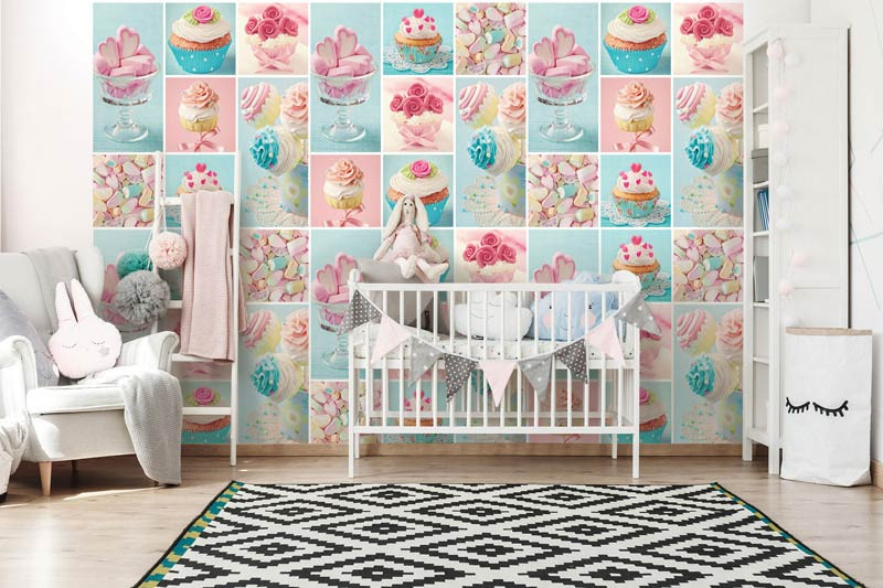 Diese Fototapete schafft einen einzigartigen Look in der: Kinderzimmer, Küche, Babyzimmer, Bäckerei, Gastronomie, Wohnzimmer, Schlafzimmer, Flur, Schule, Büro oder jeden anderen Raum.