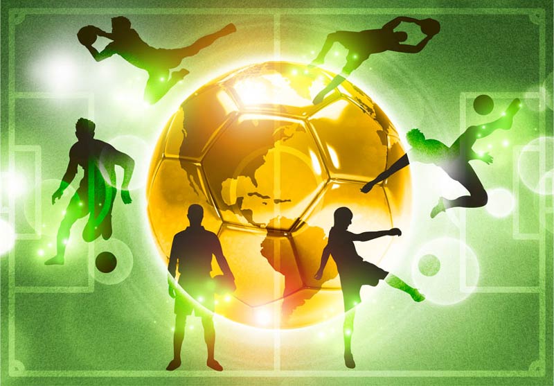 Fototapete eines goldenen Fußballs auf dem Fußballplatz.