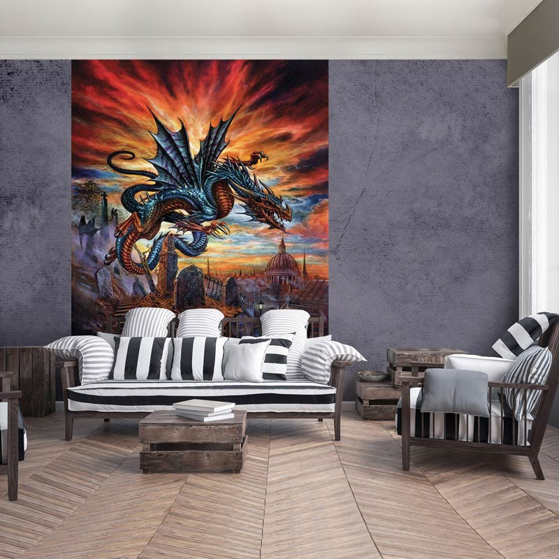 Die Drachen-Fototapete ist ein echter Blickfang im: Wohnzimmer, Schlafzimmer, Hobbyraum, Mancave, Küche, Flur, Büro oder jedem anderen Raum.