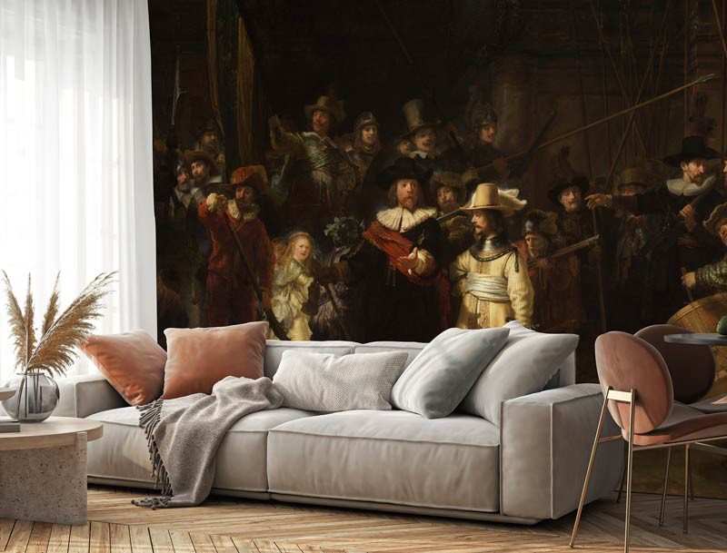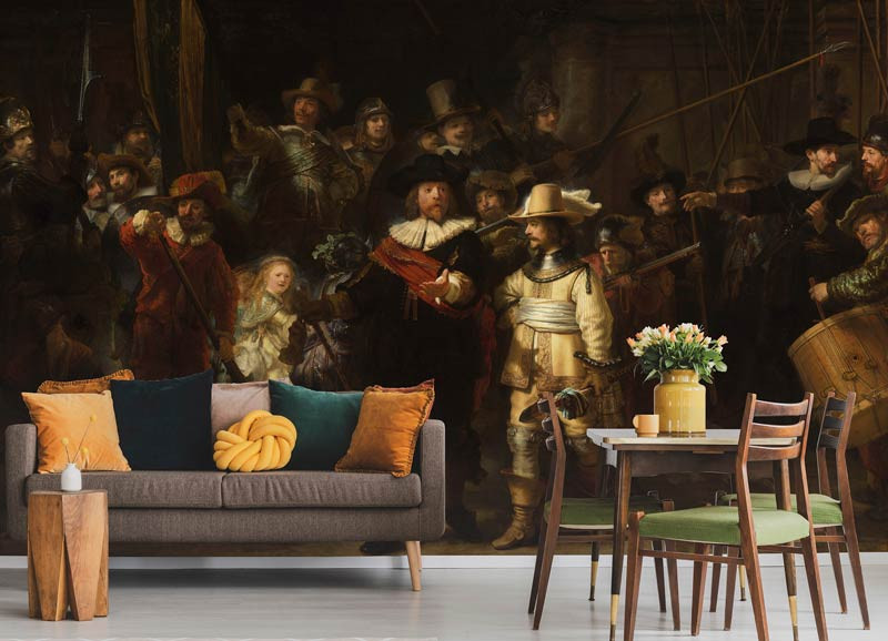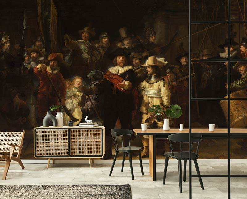 Holen Sie sich mit der Fototapete Die Nachtwache ein Meisterwerk von Weltrang in Ihr Zuhause. Dieses beeindruckende Design stellt das ikonische Gemälde von Rembrandt van Rijn dar, eines der berühmtesten Kunstwerke des Rijksmuseums. Die reichen Details und der dramatische Einsatz von Licht und Schatten machen diese Tapete zu einem zeitlosen Kunstwerk für Ihr Interieur.