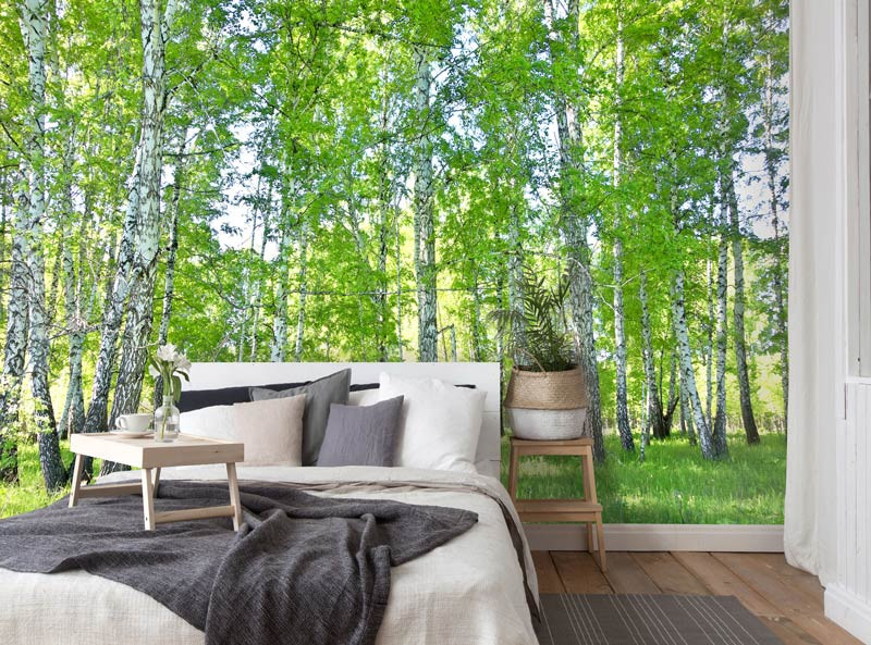 Erleben Sie die Pracht der Natur in Ihrem Interieur mit unserer Fototapete Beautiful Birch Forest. Diese atemberaubende Fototapete zeigt einen bezaubernden Birkenwald in seiner ganzen Pracht und schafft in jedem Raum ein Gefühl von Ruhe und Gelassenheit. Sie ist ideal für Liebhaber von Naturlandschaften und beruhigenden Dekoren und eignet sich hervorragend für das Wohnzimmer, das Schlafzimmer oder das Büro.