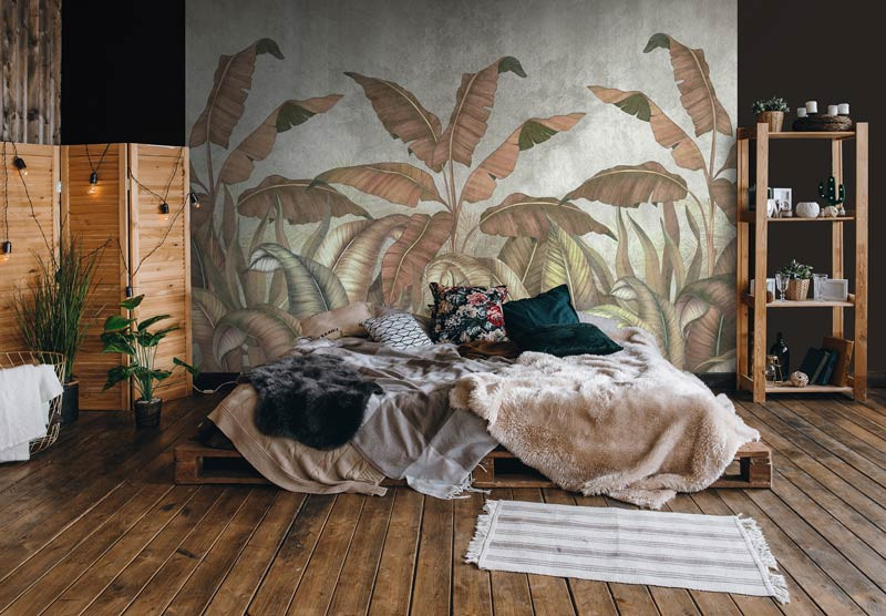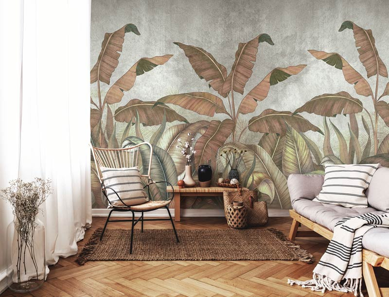 Bringen Sie die Natur in Ihr Zuhause mit unserer Fototapete Dschungelpflanzen und Blätter auf einer Betonwand. Ob Sie ein modernes Interieur oder eine eher traditionelle Einrichtung haben, unsere Fototapete Dschungelpflanzen und Blätter passt perfekt zu jedem Stil.
