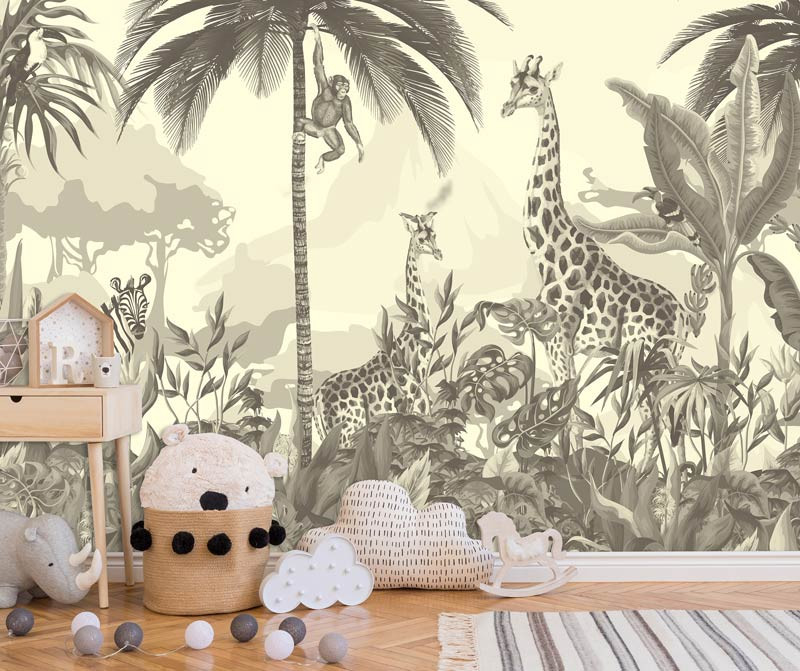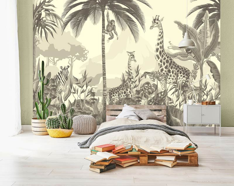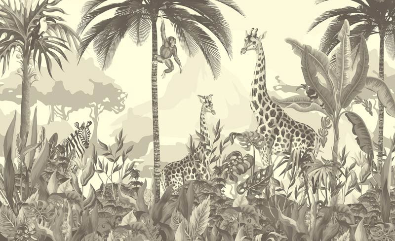 Schaffen Sie eine abenteuerliche Atmosphäre in jedem Raum mit unserer individuellen Fototapete Dschungeltiere Safari. Dieses einzigartige Schwarz-Weiß-Design erweckt den Dschungel mit einer bezaubernden Sammlung von Tieren zum Leben. Lassen Sie sich auf ein Abenteuer zwischen wilden Tieren und üppiger Vegetation ein.