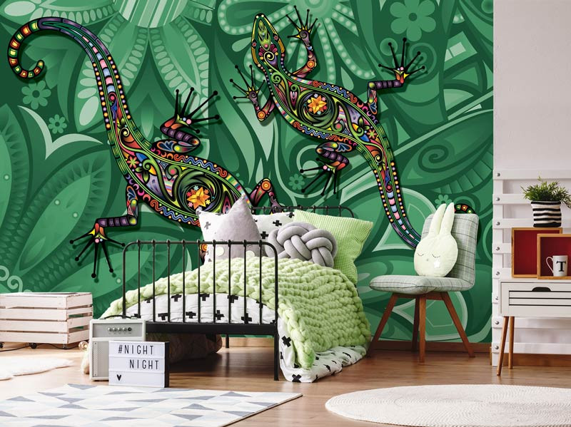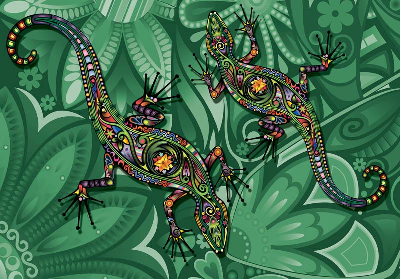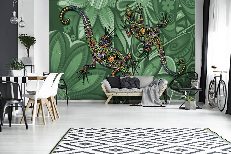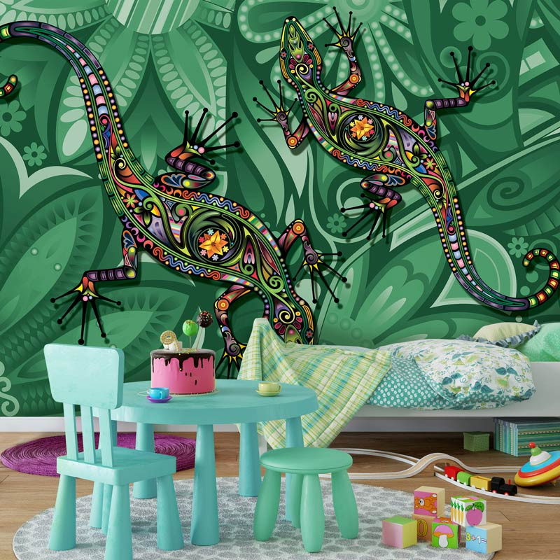 Vlies Fototapete von 2 schönen gemalten Eidechsen.
