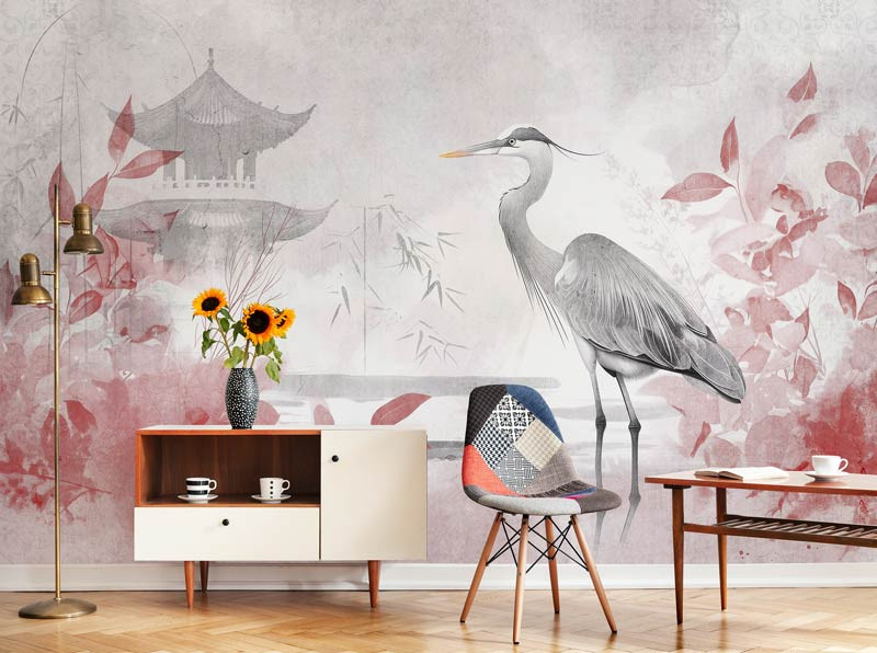 Bringen Sie Ruhe und Raffinesse in Ihr Interieur mit der Fototapete Elegant Heron. Dieses schöne Design zeigt einen anmutigen Reiher inmitten subtiler natürlicher Elemente, die für einen ruhigen und stilvollen Look sorgen. Die sanften Farben und die detaillierte Darstellung machen diese Tapete zu einer perfekten Wahl für moderne und klassische Innenräume.