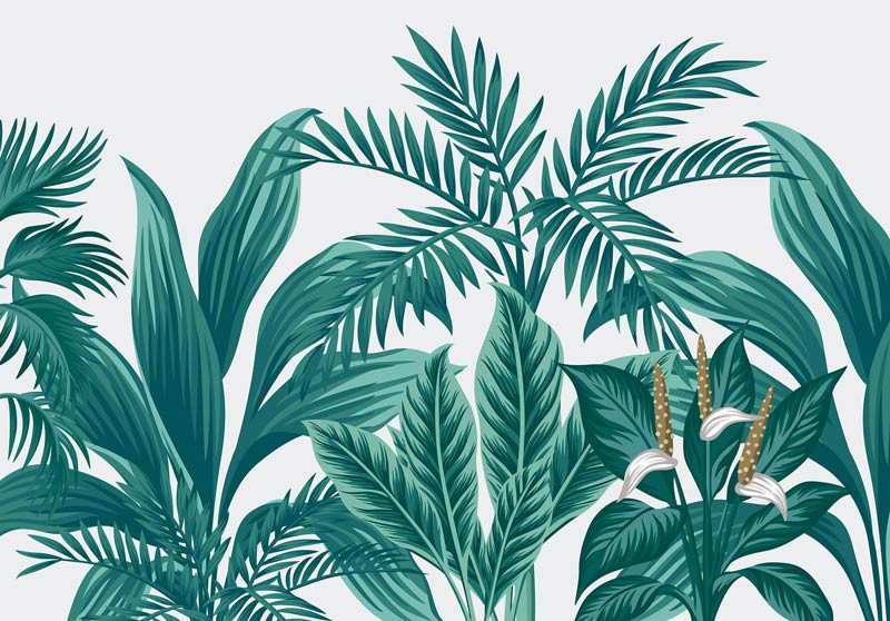 Die Fototapete mit den exotischen Pflanzen ist ein echter Blickfang und ist die perfekte Ergänzung für jeden Raum.