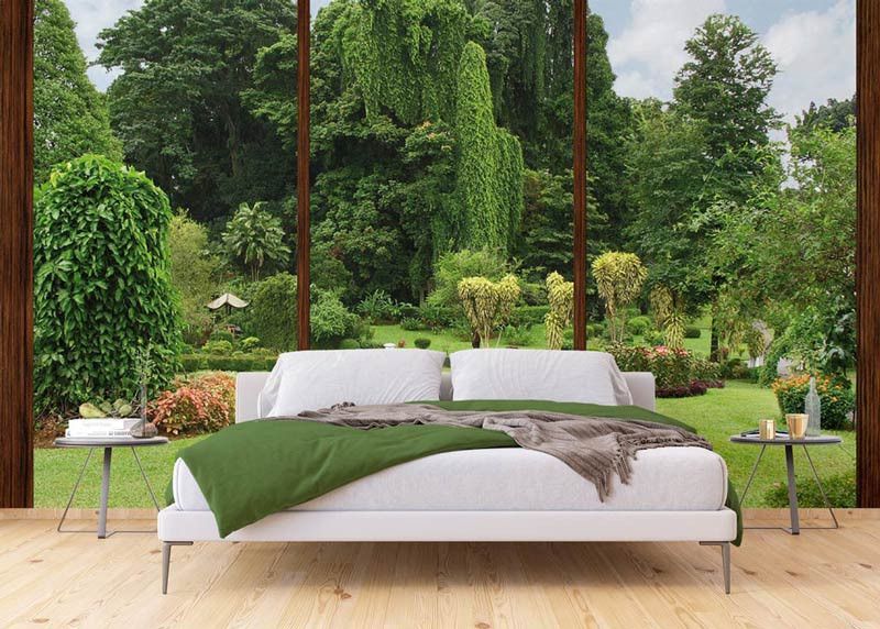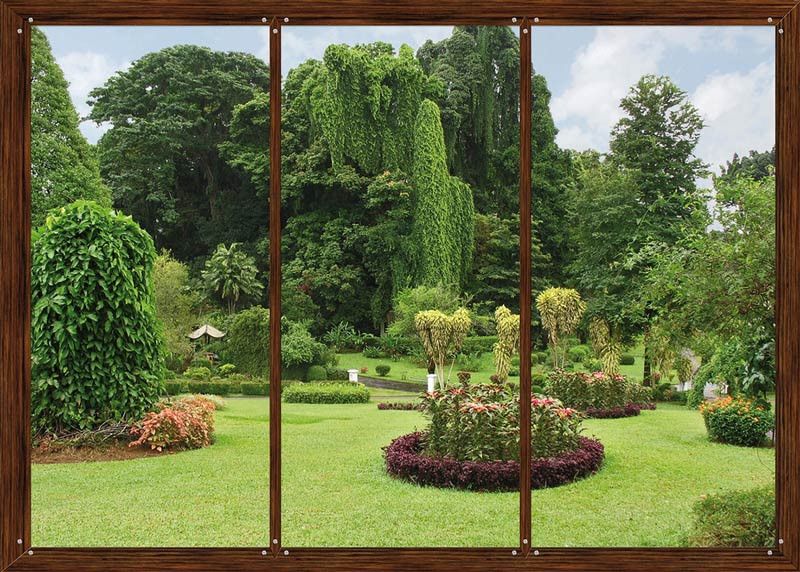 Erzeugen Sie mit dieser Fototapete die Illusion einer schönen Aussicht auf einen botanischen Garten. Tiefgrüne Blätter und farbenfrohe Blumen werden dank der hochwertigen Druckqualität perfekt wiedergegeben.