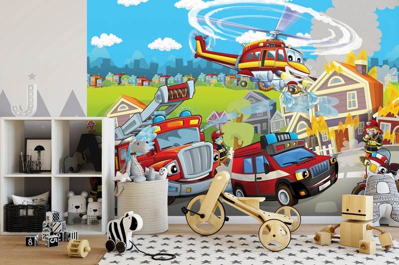 Die Feuerwehr-Fototapete ist die perfekte Ergänzung für jedes Jungen- oder Mädchen-Kinderzimmer.