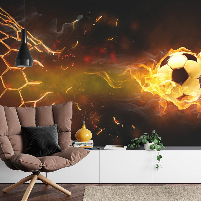 Verwandeln Sie das Kinderzimmer in eine echte Fußball-Arena mit unserer lebensechten Fußball-Fototapete. Lassen Sie die Leidenschaft für den Sport aufblühen, während eine beeindruckende Torszene die Wände ziert. Die scharfen Details des brennenden Fußballs, der durch das Netz fliegt, und die leuchtenden Farben schaffen eine eindrucksvolle Atmosphäre, die jeden jungen Fußballfan begeistern wird.