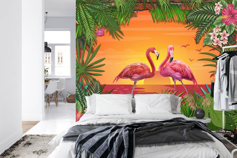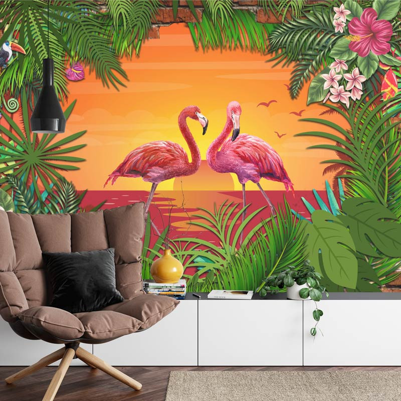 Fototapete Flamingos bei Sonnenuntergang 3D