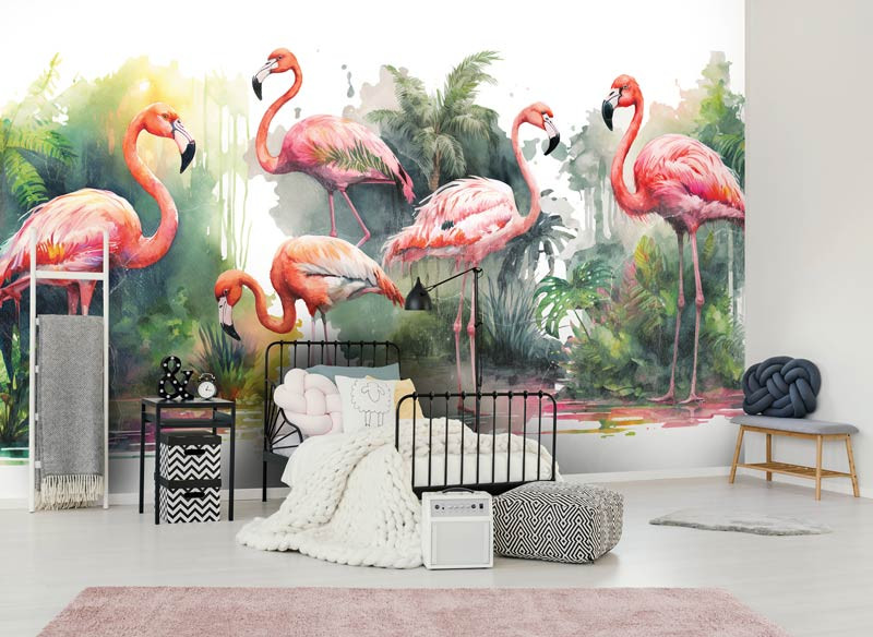 Mit der Flamingo-Fototapete können Sie jeden Raum in eine beruhigende, tropische Oase verwandeln. Sie eignet sich perfekt für das Kinderzimmer, das Schlafzimmer und das Wohnzimmer und bringt einen Hauch von Ruhe und Gelassenheit in jeden Raum.