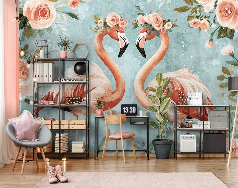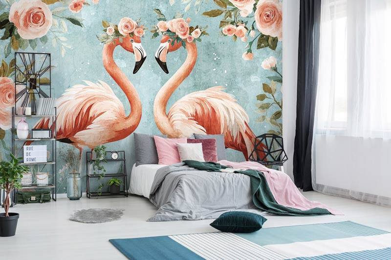 Bringen Sie einen Hauch von exotischer Eleganz in Ihr Interieur mit unserer Fototapete Flamingos und Rosen. Dieses atemberaubende Design kombiniert anmutige Flamingos mit blühenden Rosen und schafft so ein perfektes Gleichgewicht zwischen Natur und Schönheit. Die leuchtenden Farben und das detaillierte Design machen diese Fototapete perfekt für ein Wohnzimmer, ein Schlafzimmer oder sogar ein Kinderzimmer.