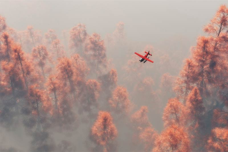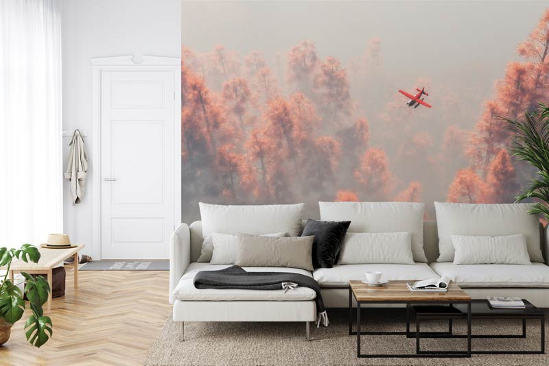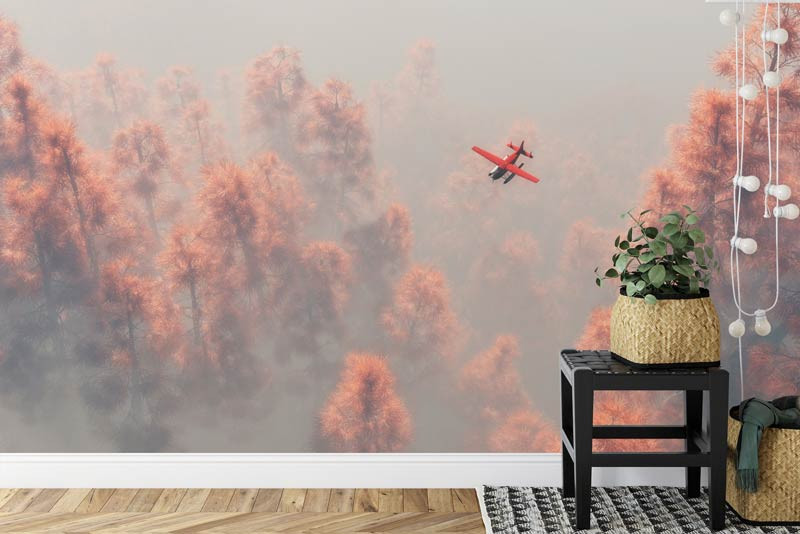 Erleben Sie die bezaubernde Kombination aus Natur und Technik mit unserer individuellen Fototapete Flugzeug über nebligem Kiefernwald. Dieses einzigartige Design verbindet die friedliche Schönheit eines Kiefernwaldes mit der Aufregung eines Flugzeugs am Himmel und bringt einen Hauch von Abenteuer in jeden Raum.