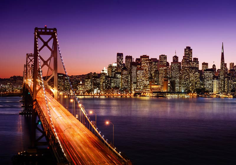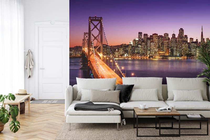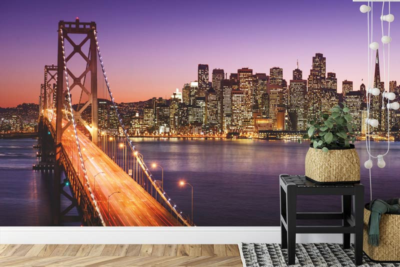 Genießen Sie die bezaubernde Schönheit von San Francisco bei Nacht mit unserer Fototapete der San Francisco-Oakland Bay Bridge. Bringen Sie die Magie des nächtlichen Stadtlebens in Ihr Interieur und schaffen Sie eine Atmosphäre der Mystik und des Reizes.