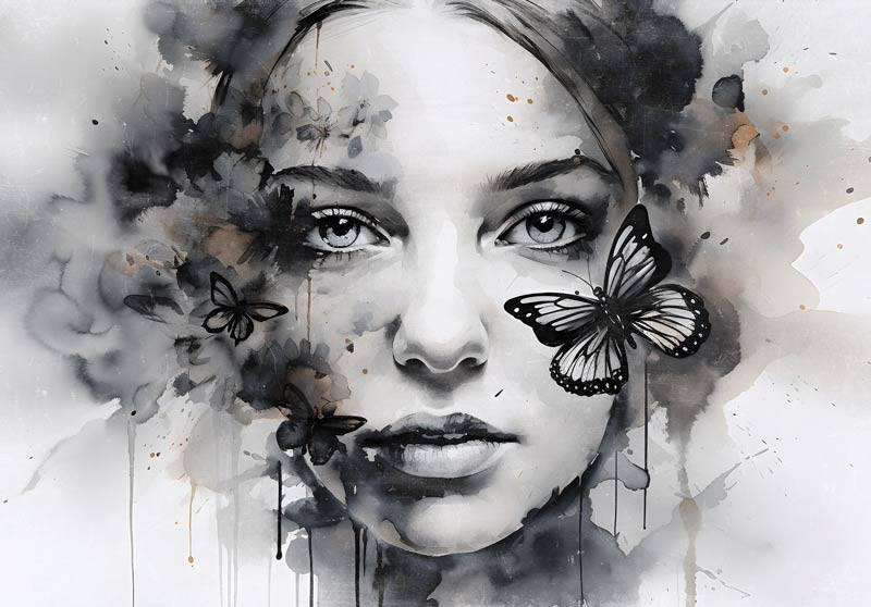 Verwandeln Sie Ihr Wohnzimmer, Schlafzimmer oder Büro in eine Oase der Schönheit und Gelassenheit mit unserer Fototapete Frau und Schmetterling Kunst. Lassen Sie sich von der bezaubernden Harmonie zwischen weiblicher Eleganz und Schmetterlingsträumen inspirieren, die an Ihrer Wand zum Leben erwachen.