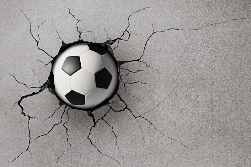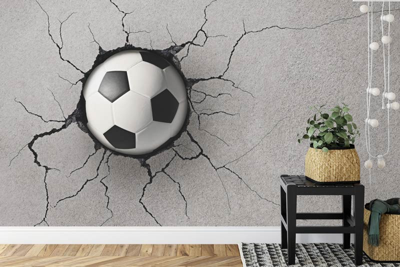 Erwecken Sie die Leidenschaft für Fußball in jedem Raum zum Leben mit unserer Fototapete Fußball in der Wand 3D. Dieses einzigartige Design erweckt die Illusion eines Fußballs, der fest in eine Betonwand eingebettet ist, und erzeugt so einen auffälligen und faszinierenden Effekt.
