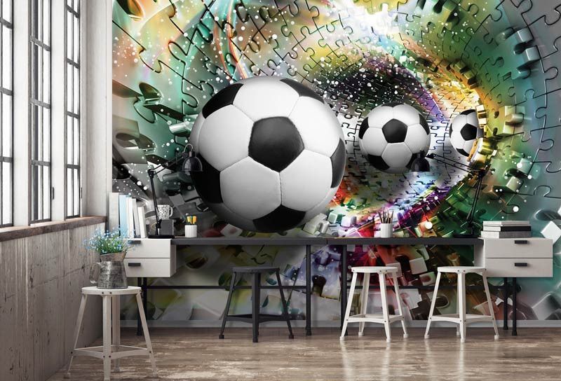 Fototapete Fußbälle Puzzle 3D.