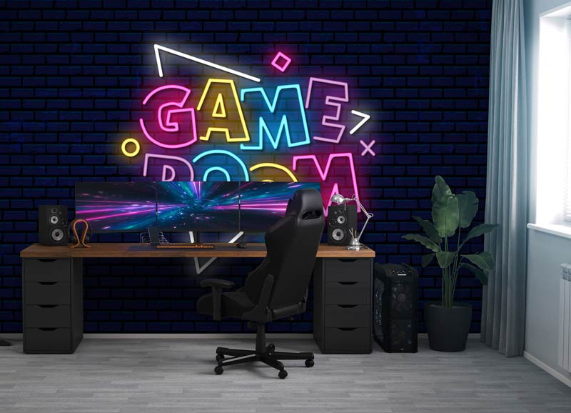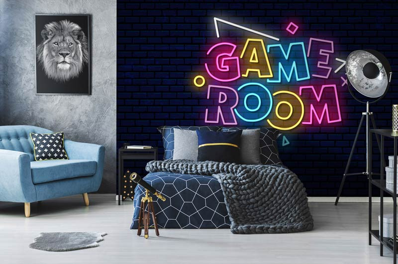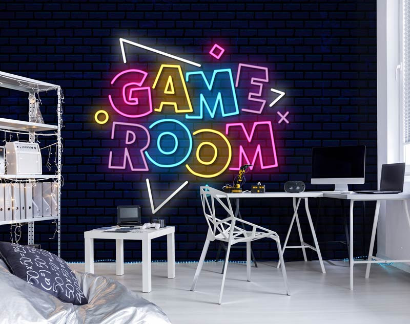 Mit der Fototapete Game Room Neon Letters erhalten Sie ein Design, das Verspieltheit und Stil mühelos miteinander verbindet. Bestellen Sie die individuelle Fototapete, die perfekt in Ihr Spielzimmer passt, und genießen Sie eine inspirierende Umgebung, die Sie jeden Tag zum Spielen und Erleben einlädt.