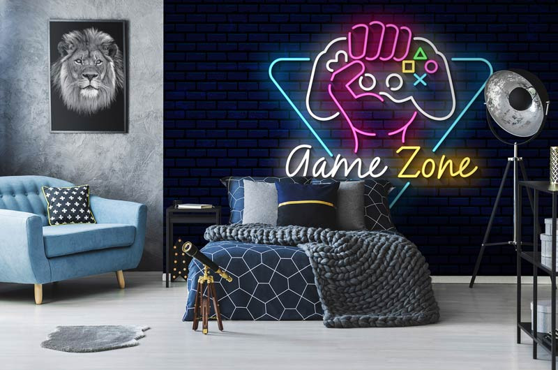 Mit der Game Zone Neon Design Fototapete erhalten Sie ein Design, das Gaming und Stil perfekt miteinander verbindet. Bestellen Sie die individuelle Fototapete, die perfekt in Ihr Gaming-Zimmer passt, und genießen Sie eine inspirierende Umgebung, die Sie jeden Tag zum Spielen und Erleben einlädt.
