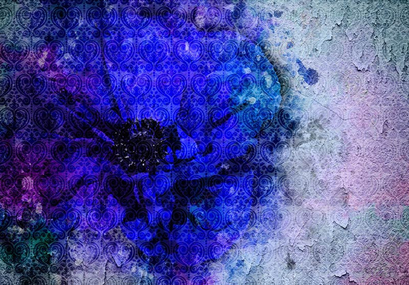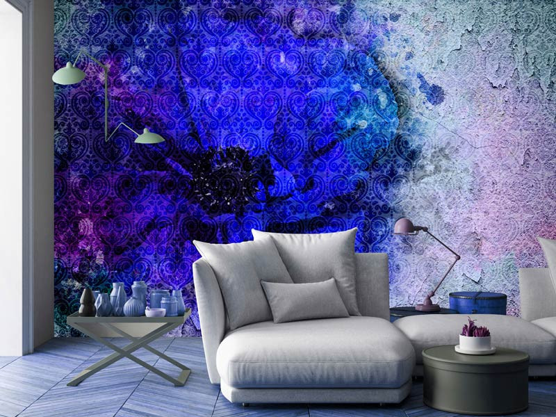 Fototapete einer Wandmalerei, die eine schöne, blaue Blume darstellt.