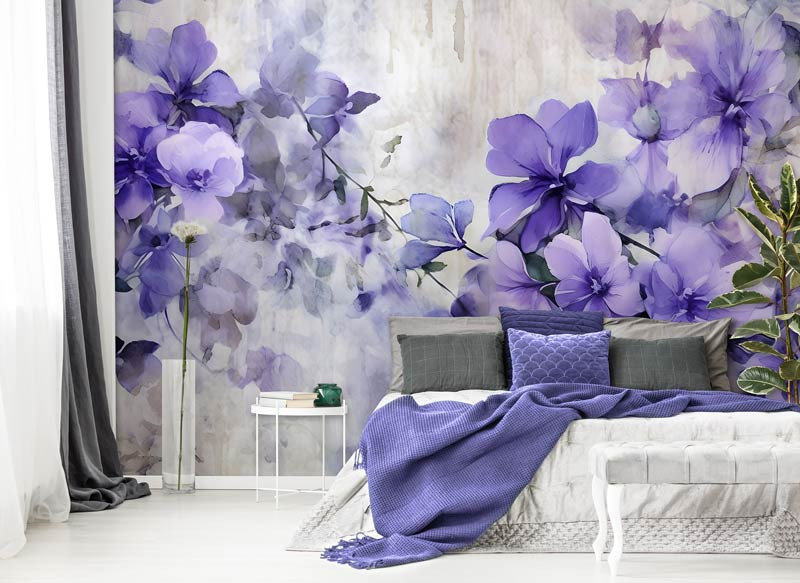 Fototapete Painted Purple Flowers