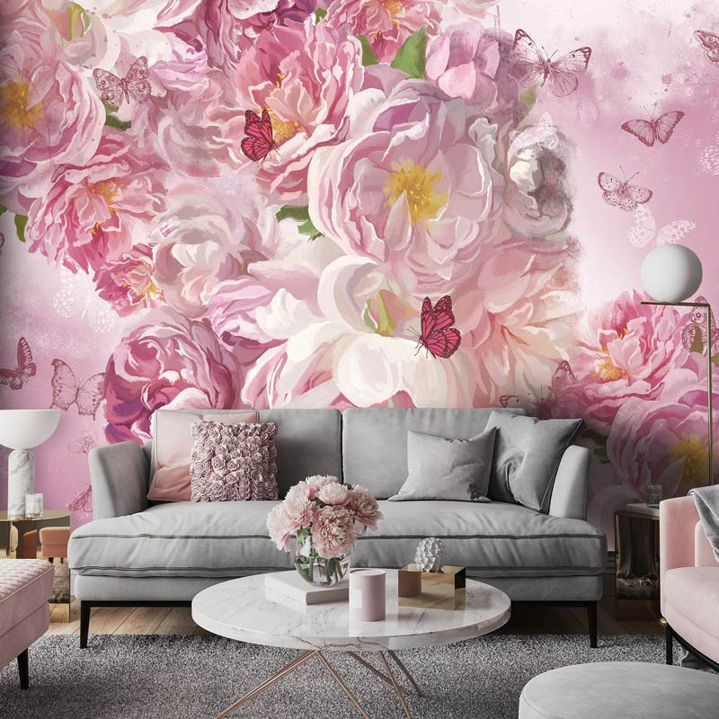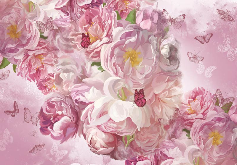 Bringen Sie die bezaubernde Schönheit von Pfingstrosen in Ihre Innenräume mit unserer Fototapete Painted Peonies. Diese wunderschöne Fototapete zeigt handgemalte Pfingstrosen in voller Blüte und verleiht jedem Raum einen Hauch von natürlicher Pracht und Eleganz. Perfekt für Liebhaber von Blumen und Malerei+E18:E20, ideal für das Wohnzimmer, das Schlafzimmer oder den Wintergarten.