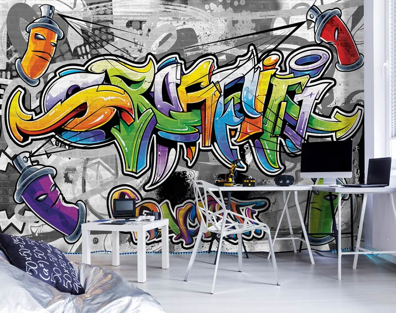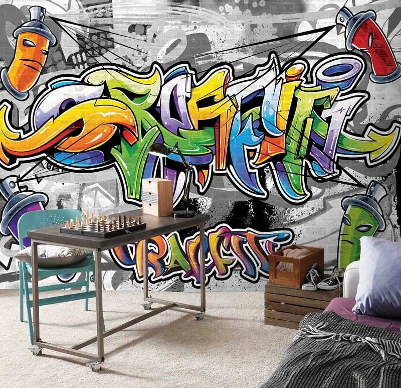Die Graffiti-Fototapete ist die perfekte Ergänzung für jeden Raum.