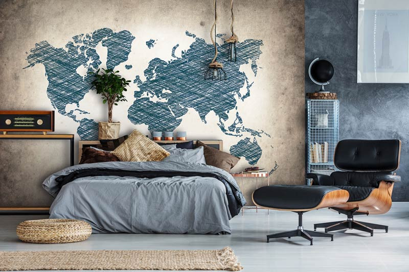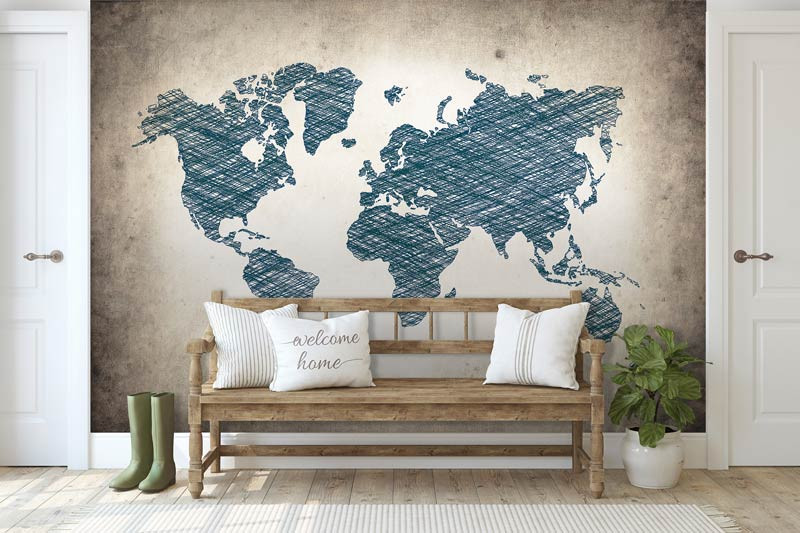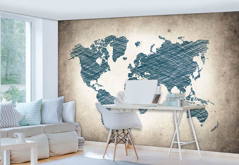 Vlies Fototapete von schönen, grauen Karte Weltkarte. Diese Karte des Planeten Erde sieht toll aus im: Wohnzimmer, Schlafzimmer, Küche, Flur, Büro, Restaurant, Schule oder jedem anderen Raum.