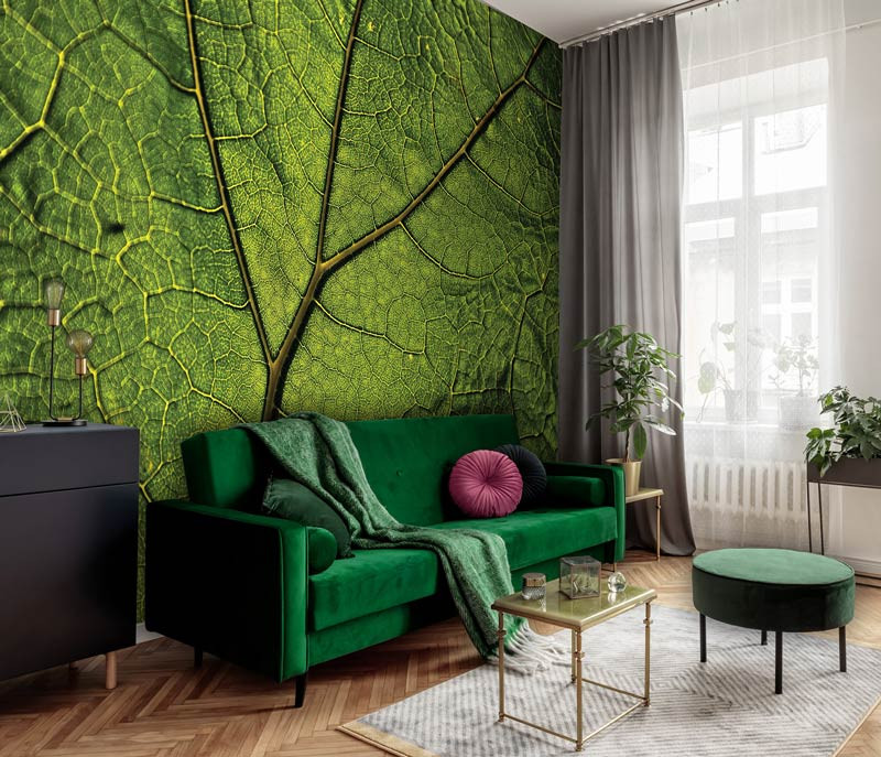 Die Fototapete Grünes Blatt ist die perfekte Ergänzung für jeden Raum.