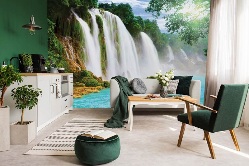 Vlies Fototapete einen schönen, großen Wasserfall am Rande des Dschungels.