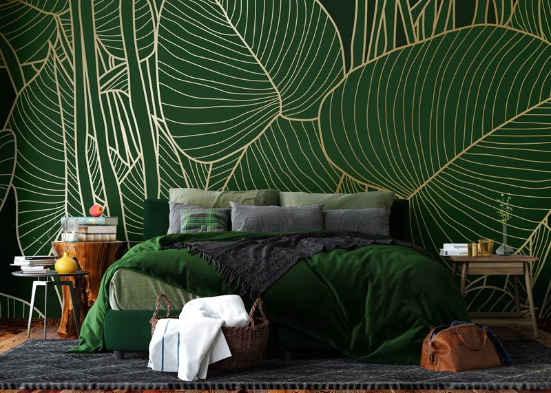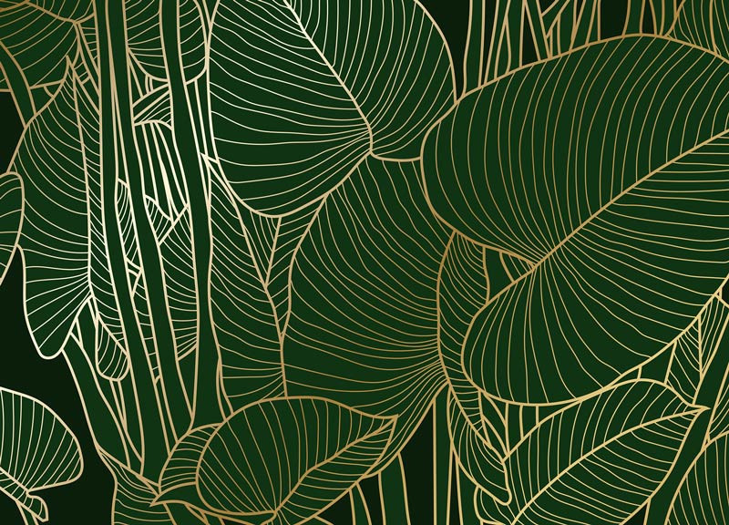 Schaffen Sie ein luxuriöses und natürliches Ambiente mit der Fototapete Green Leaves with Gold Details. Die tiefen Grüntöne in Kombination mit dezenten goldenen Akzenten verleihen jedem Raum ein schickes und stilvolles Aussehen. Die verspielte Beleuchtung der Blätter erzeugt einen realistischen und raffinierten Effekt und verleiht der Fototapete eine lebendige Tiefe.