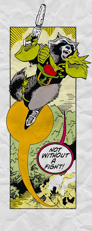 Der kleine Superheld Rocket Raccoon ist immer bereit, in die Schlacht zu ziehen.