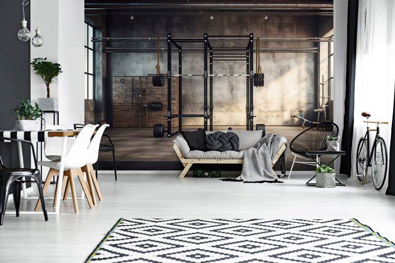 Verleihen Sie Ihrem Trainingsraum zusätzliche Energie mit unserer Fototapete Gym Power Zone. Dieses elegante Design strahlt Kraft und Konzentration aus und eignet sich perfekt, um Ihr Fitnessstudio oder Ihren Heimtrainer in einen Ort maximaler Anstrengung und Ergebnisse zu verwandeln.