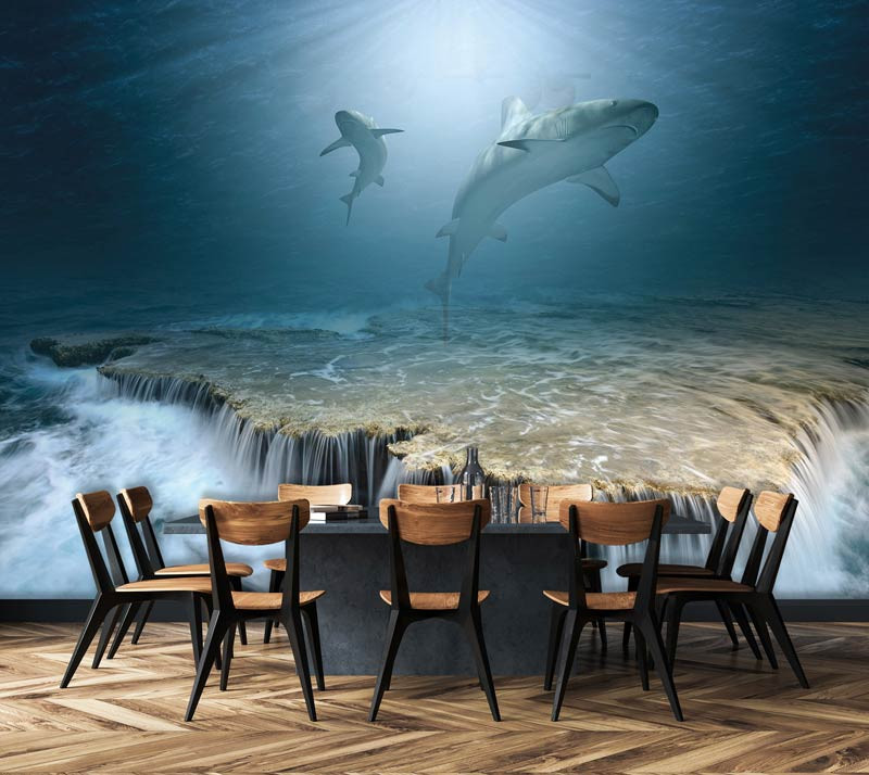 Die Fototapete Haie ist ein echter Blickfang und ist die perfekte Ergänzung für jeden Raum.