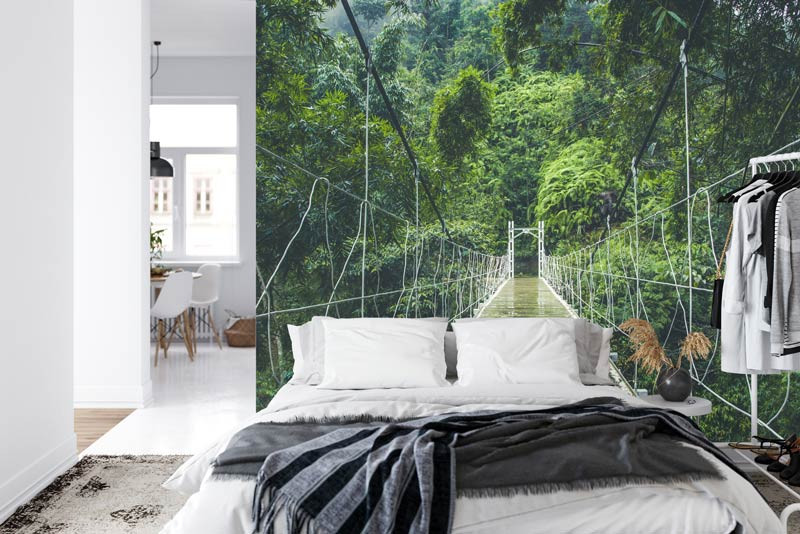 Erforschen Sie die Geheimnisse des Dschungels mit unserer Fototapete einer Hängebrücke. Bringen Sie die wilde Schönheit der Natur in Ihr Interieur und schaffen Sie eine Atmosphäre von Abenteuer und Entdeckung.