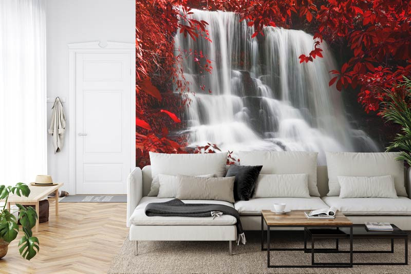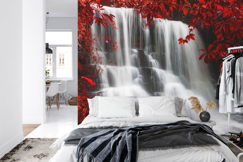 Lassen Sie sich von der Magie des Herbstes mit der Fototapete Herbst-Wasserfall verzaubern. Erleben Sie die Pracht bunter Blätter, die im sanften Licht schimmern, während sie entlang eines majestätischen Wasserfalls tanzen. Das Ganze bildet ein zauberhaftes Spektakel, das die warme Atmosphäre der Herbstzeit perfekt einfängt.