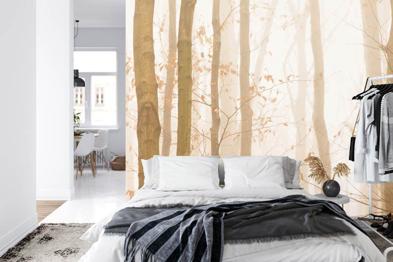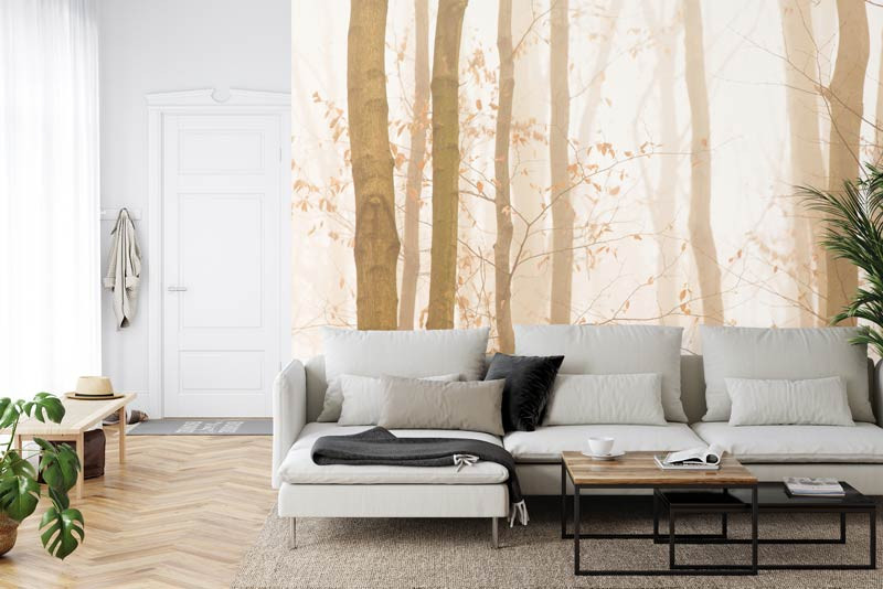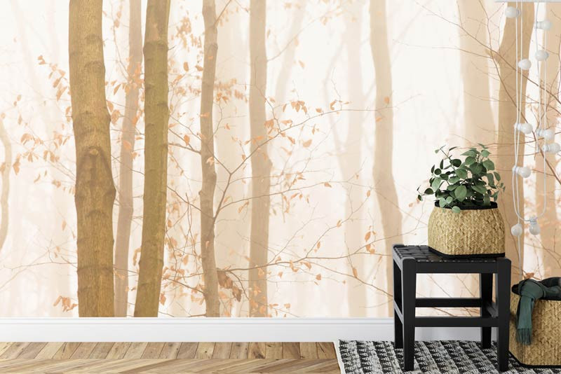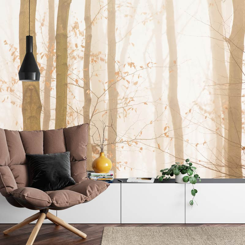 Lassen Sie sich von den warmen Farben und der geheimnisvollen Atmosphäre unserer Fototapete Herbstwald im Nebel verzaubern. Wandern Sie durch die nebligen Pfade des Herbstwaldes und genießen Sie die beruhigende Atmosphäre, die dieses schöne Bild in Ihr Zuhause bringt.