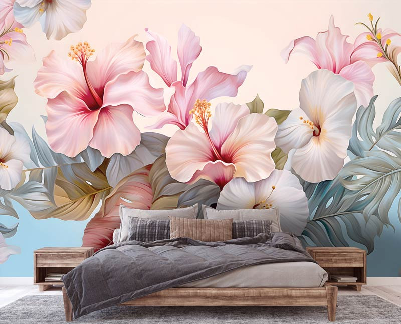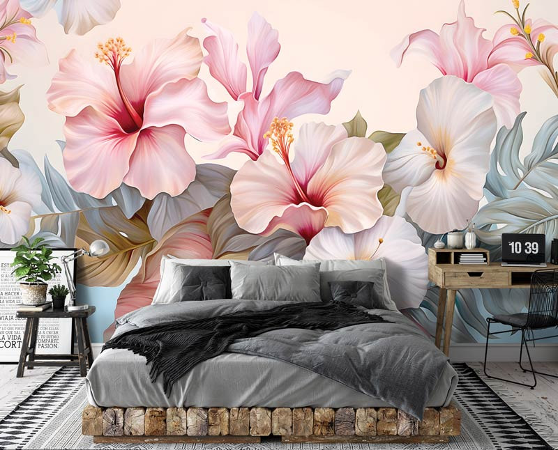 Verleihen Sie Ihrem Wohnzimmer, Schlafzimmer oder Büro einen Hauch von tropischer Schönheit mit unserer Fototapete Hibiskus Art. Lassen Sie sich von den leuchtenden Farben und zarten Details dieser wunderschönen Blumen verzaubern, die Ihr Interieur zum Leben erwecken werden.