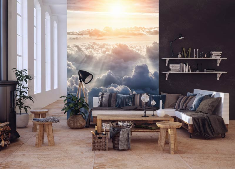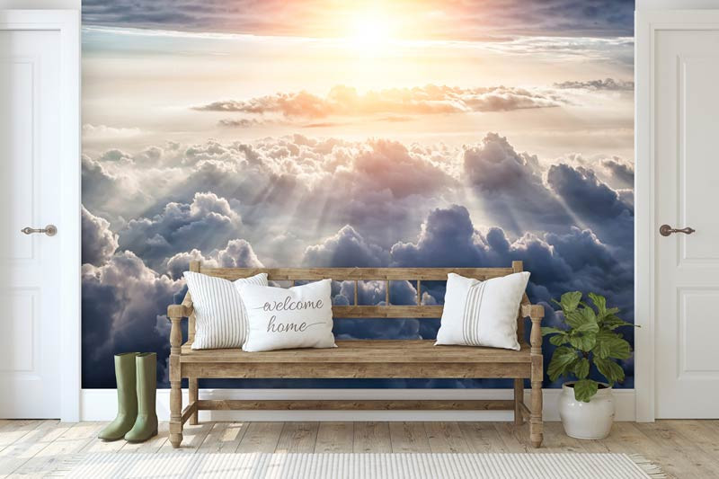 Vlies Fototapete der Wolken mit der strahlenden Sonne.