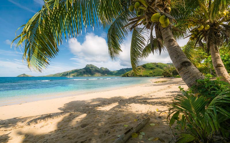 Kokosnüsse, Palmen, der Strand und das Meer. Alles ist zum Greifen nah und macht die Pazifikinsel zu einem Paradies auf Erden.