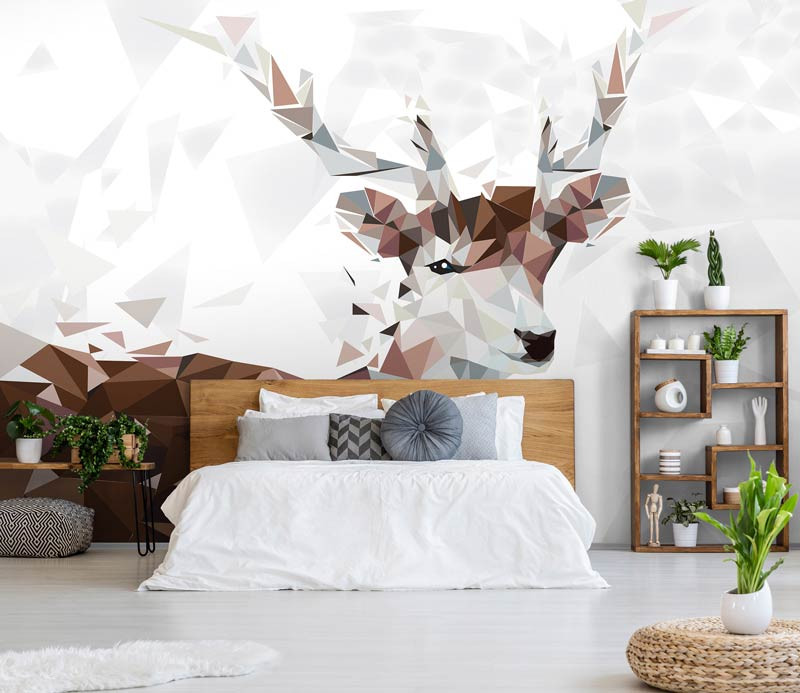 Fototapete von einem geometrischen, abstrakten Kunstwerk eines schönen Hirsches.