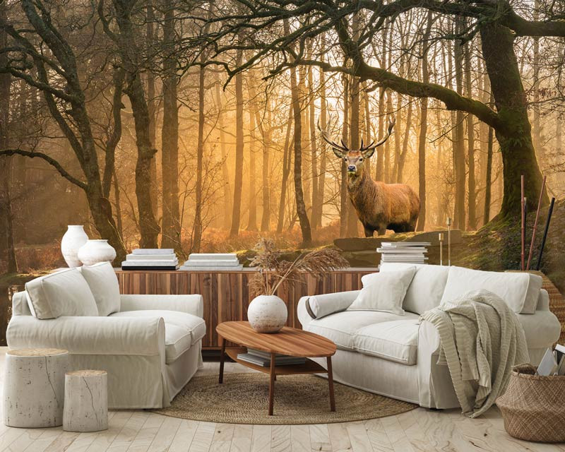 Die Fototapete lässt sich leicht anpassen, indem Sie die gewünschten Maße eingeben und den schönsten Teil des Bildes auswählen. Dank des gestochen scharfen Drucks werden die Details der Rehe, des Waldes und des Sees realistisch wiedergegeben und verleihen Ihrem Raum sofort einen einzigartigen und einladenden Look. Lassen Sie sich von der beruhigenden Pracht dieses besonderen Hirsches am Waldrand inspirieren.