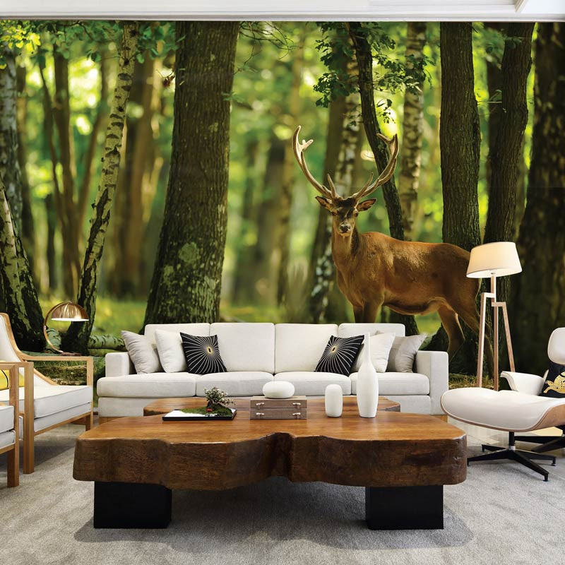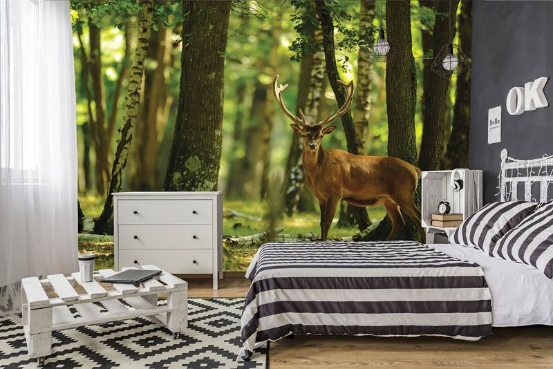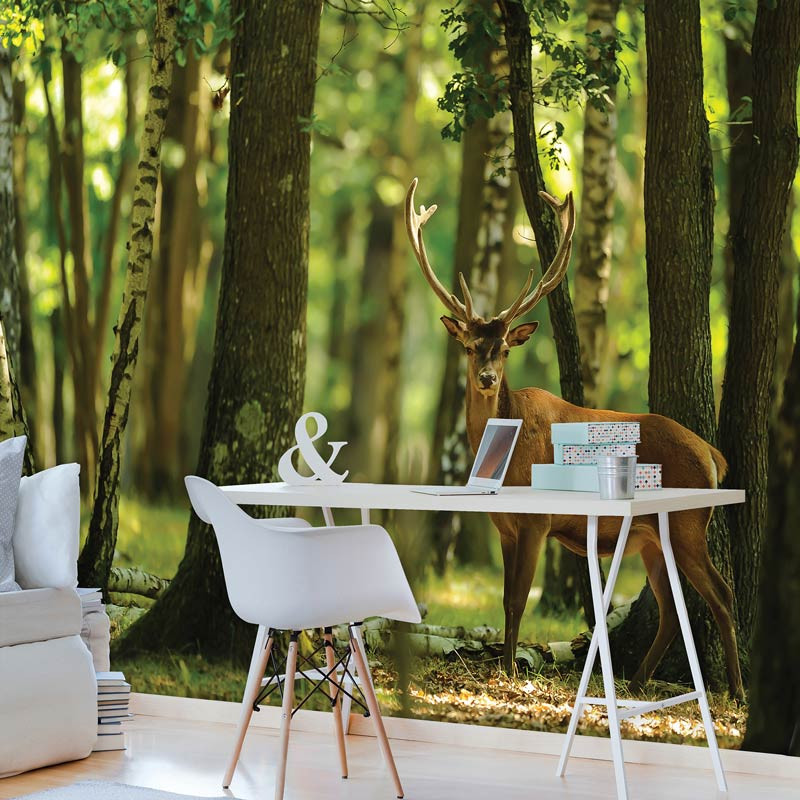 Fototapete mit dem Hirsch im Wald ist eine einzigartige Ergänzung für jeden Raum.
