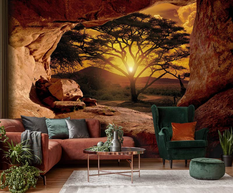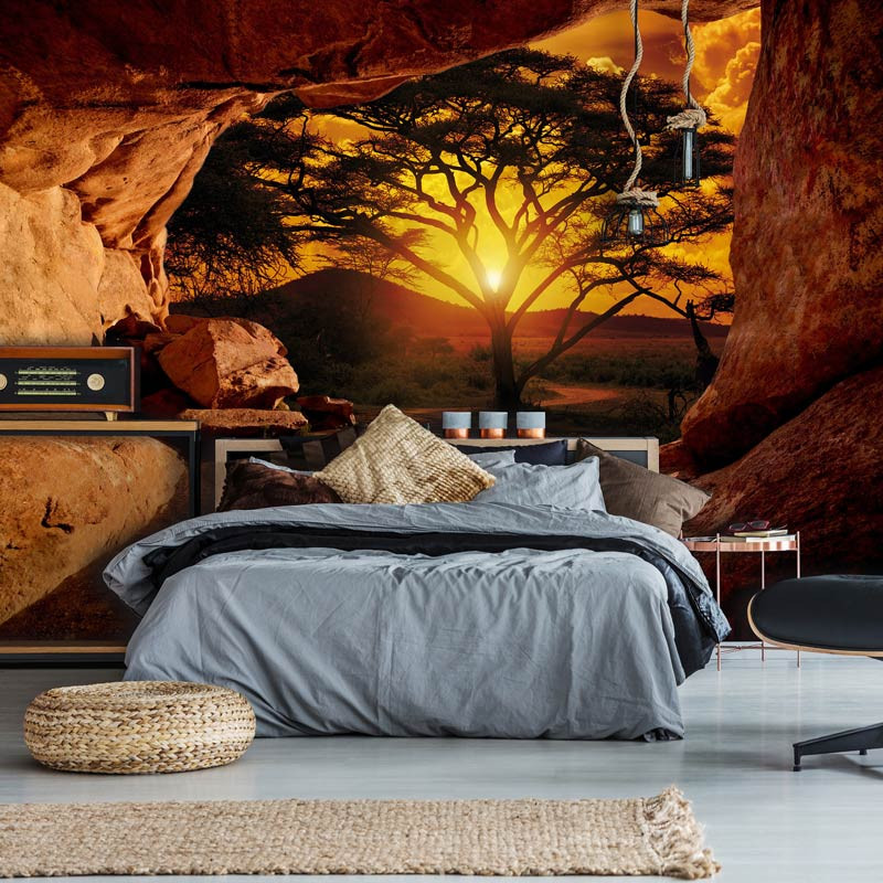 Fototapete Höhle mit Sonnenuntergangsansicht 3D