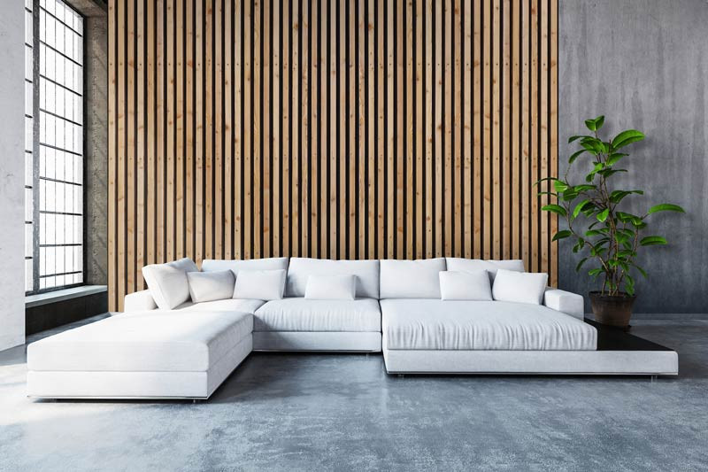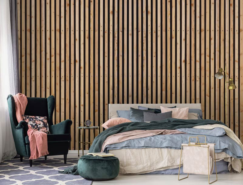 Jedes Detail, von den Holzmaserungen bis zu den Schrauben, wird gestochen scharf wiedergegeben, wodurch ein realistischer und beeindruckender visueller Effekt entsteht. Die Fototapete ist eine ideale und preisgünstigere Alternative zu Akustikplatten aus echtem Holz, bietet aber dieselben ästhetischen Vorteile.