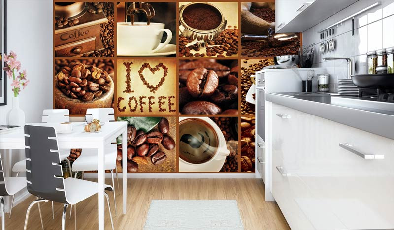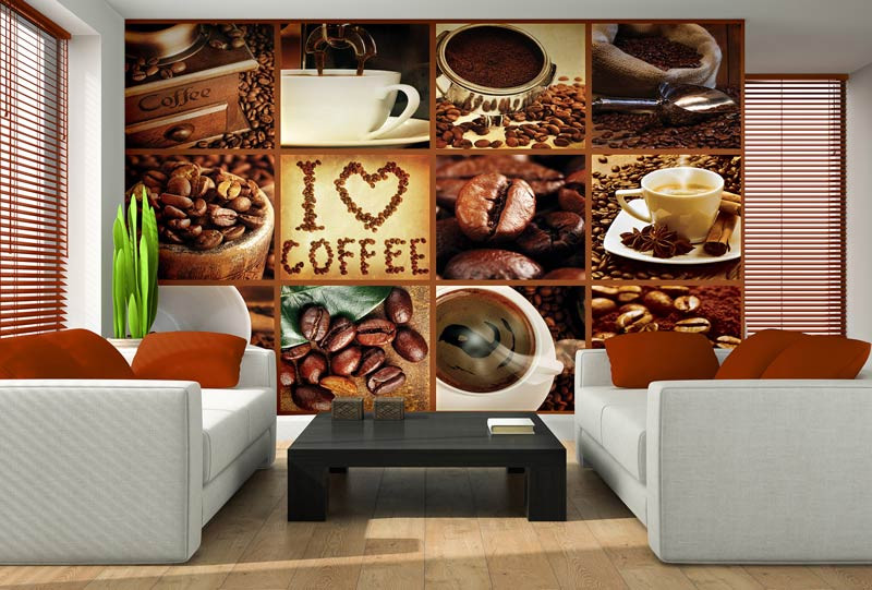 Fototapete Ich liebe Kaffee Collage Brauner Rahmen
