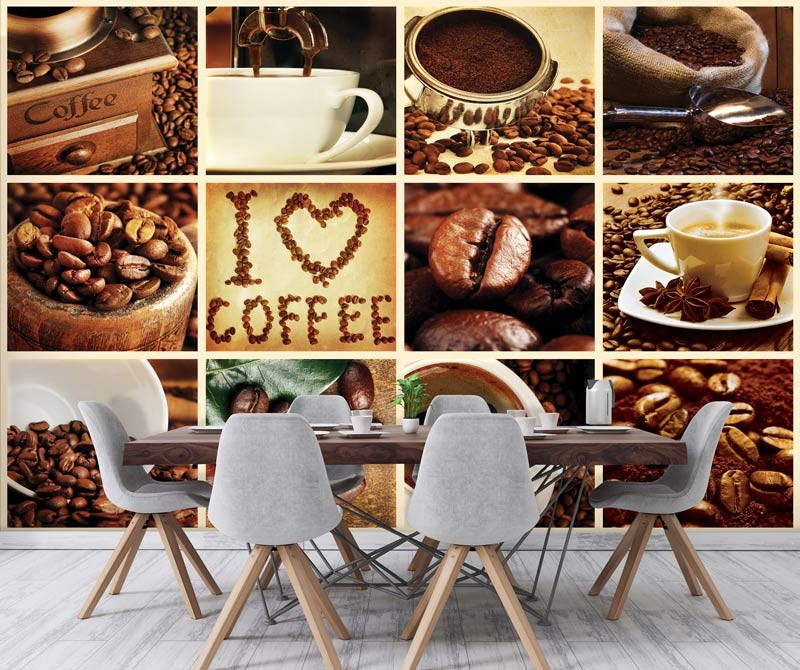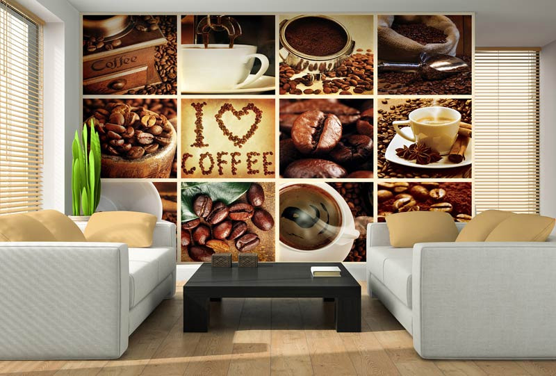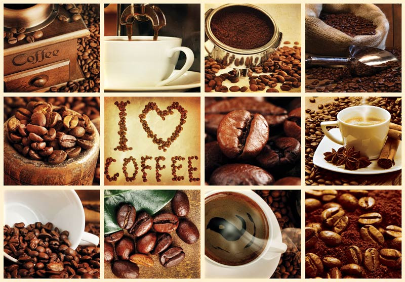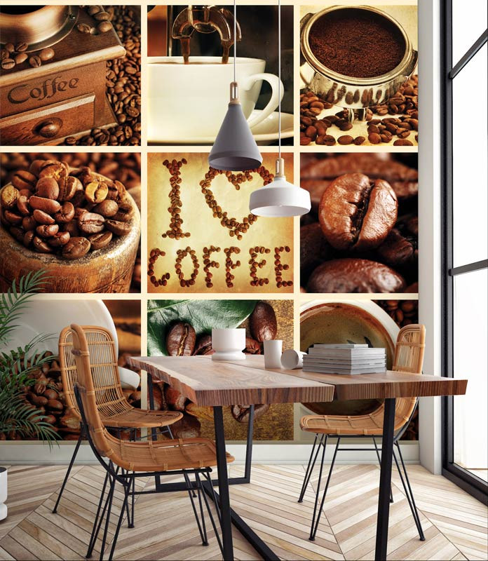Fototapete I Love Coffee Collage Weißer Rahmen.
