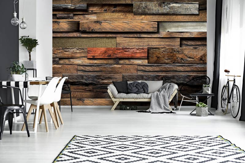 Fototapete von verschiedenen industriellen Holzbrettern ist eine einzigartige Ergänzung für jeden Raum.